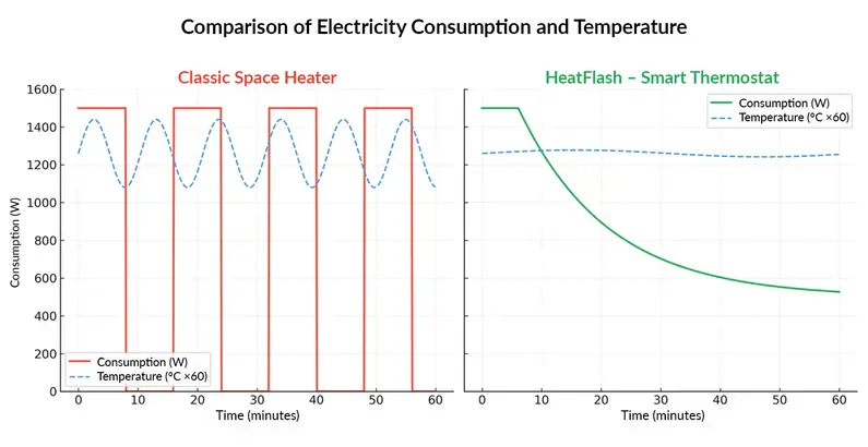 ❌ No intelligent thermostat → It either blasts on full or switches off, no regulation, so energy waste